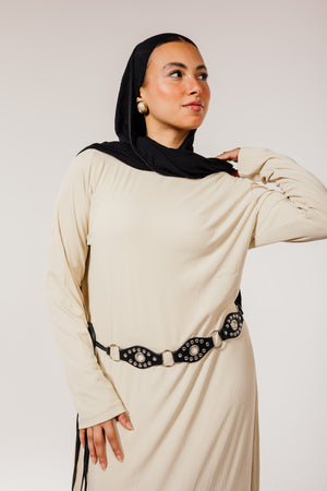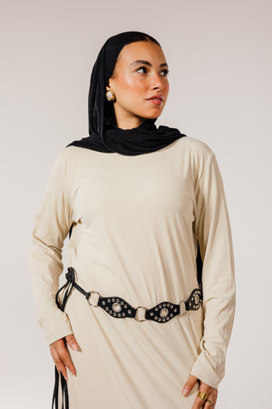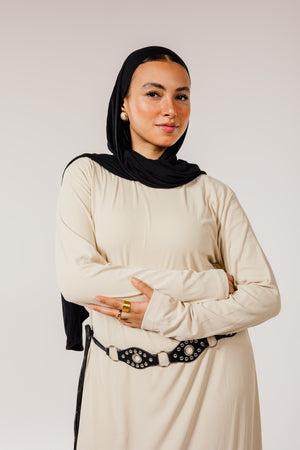 A lightweight cotton dress with sleeves perfect for modest breathable summer looks Stay cool comfortable and effortlessly elegant all season long