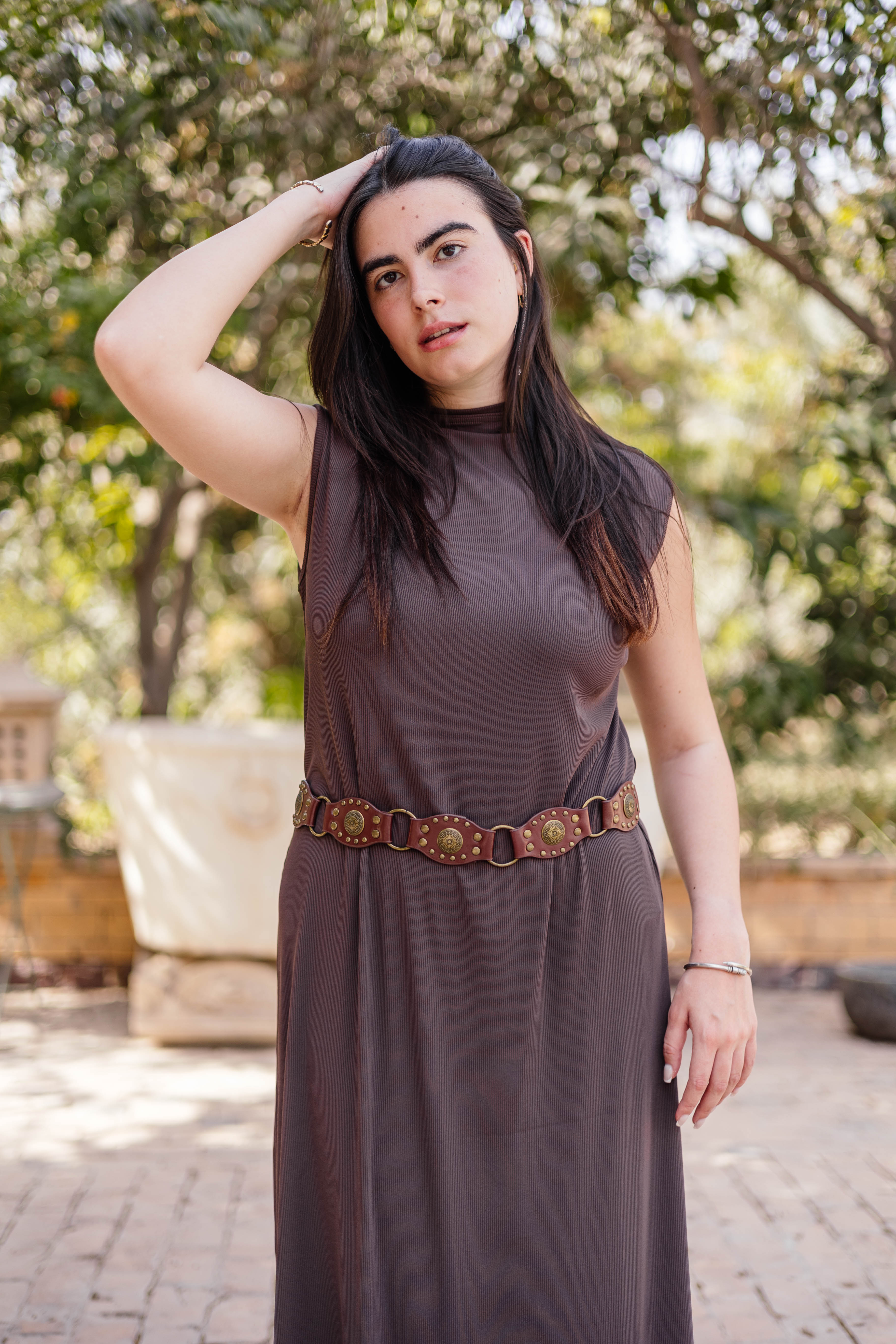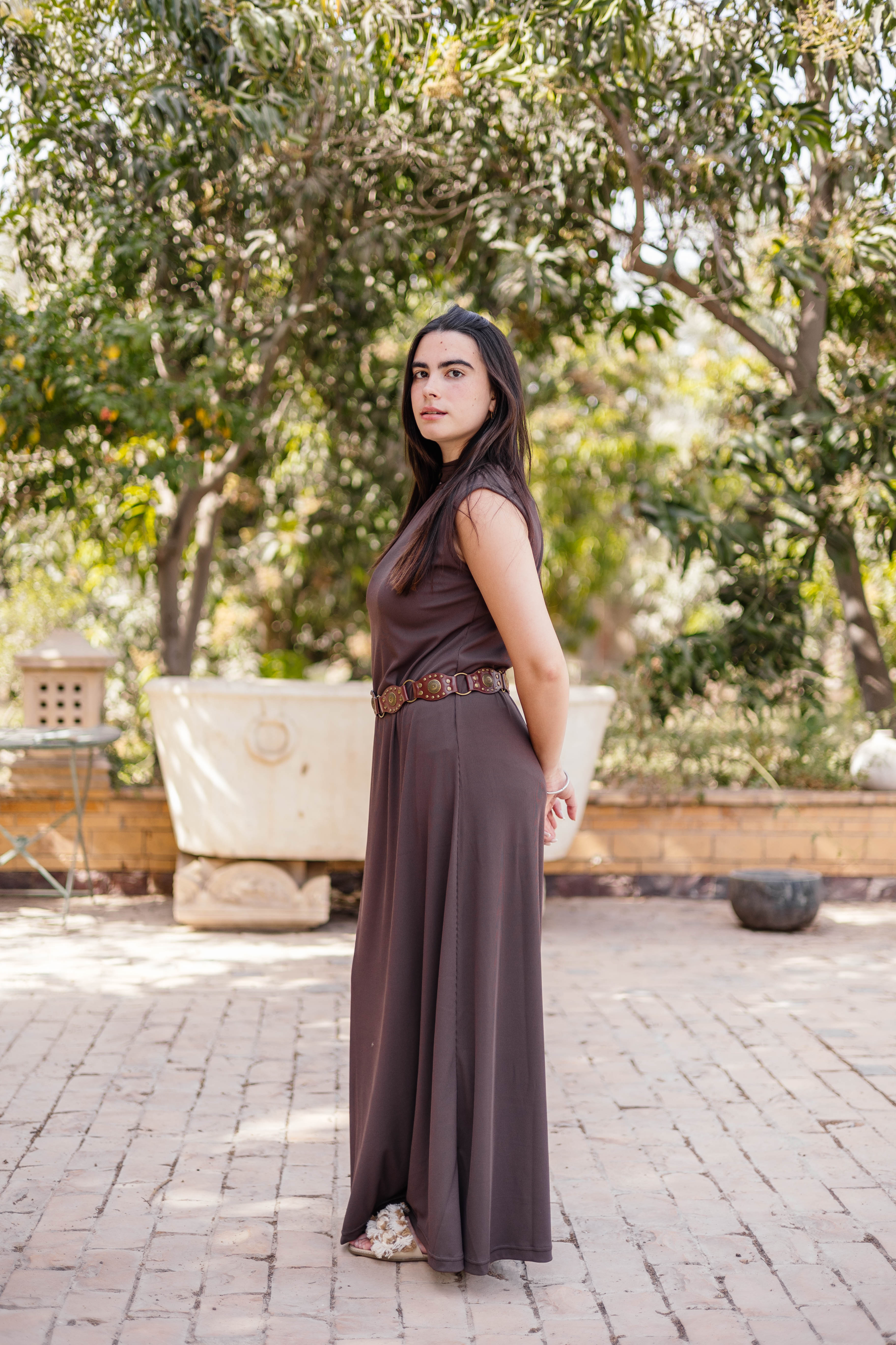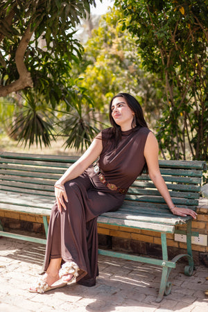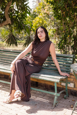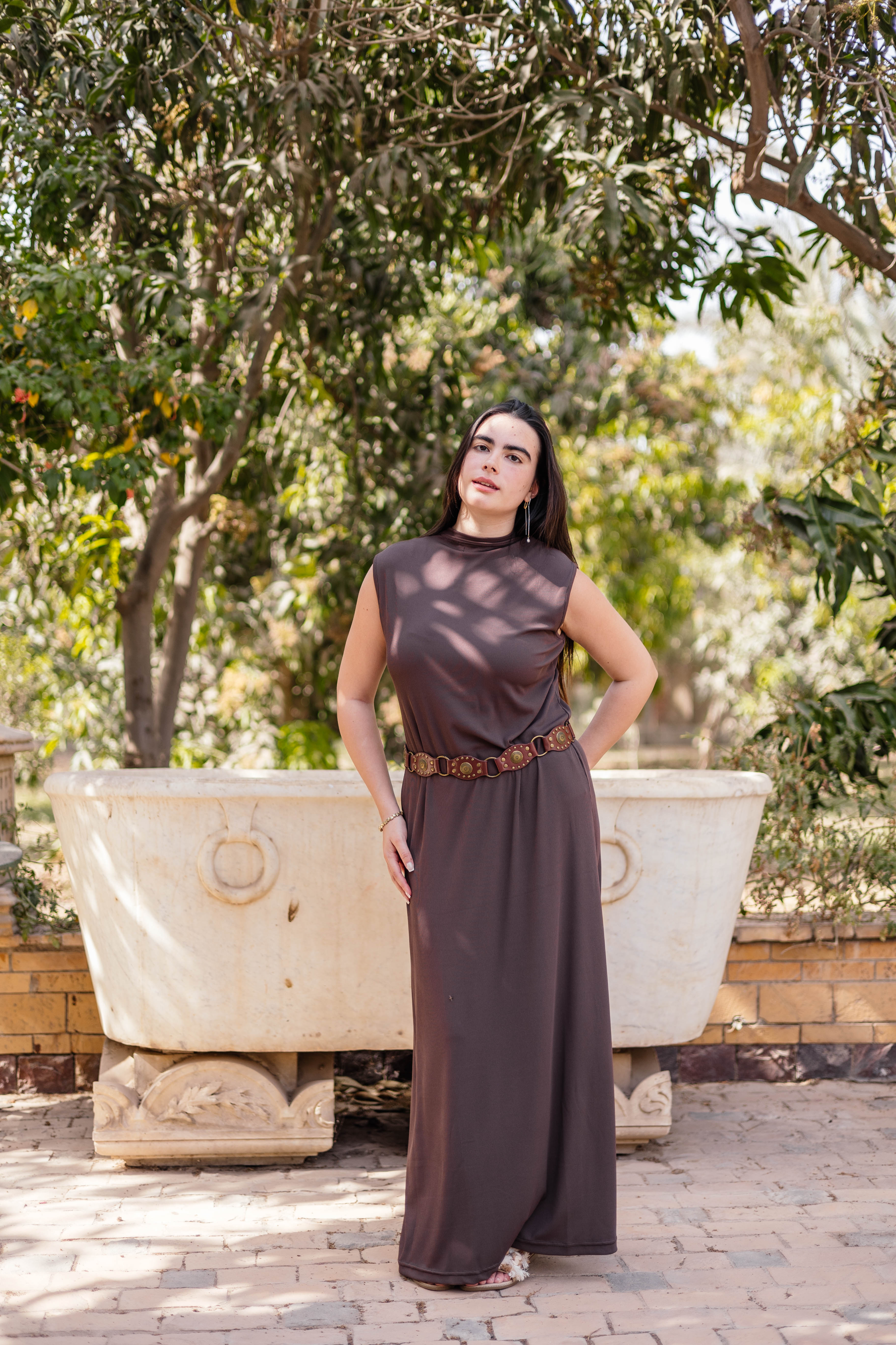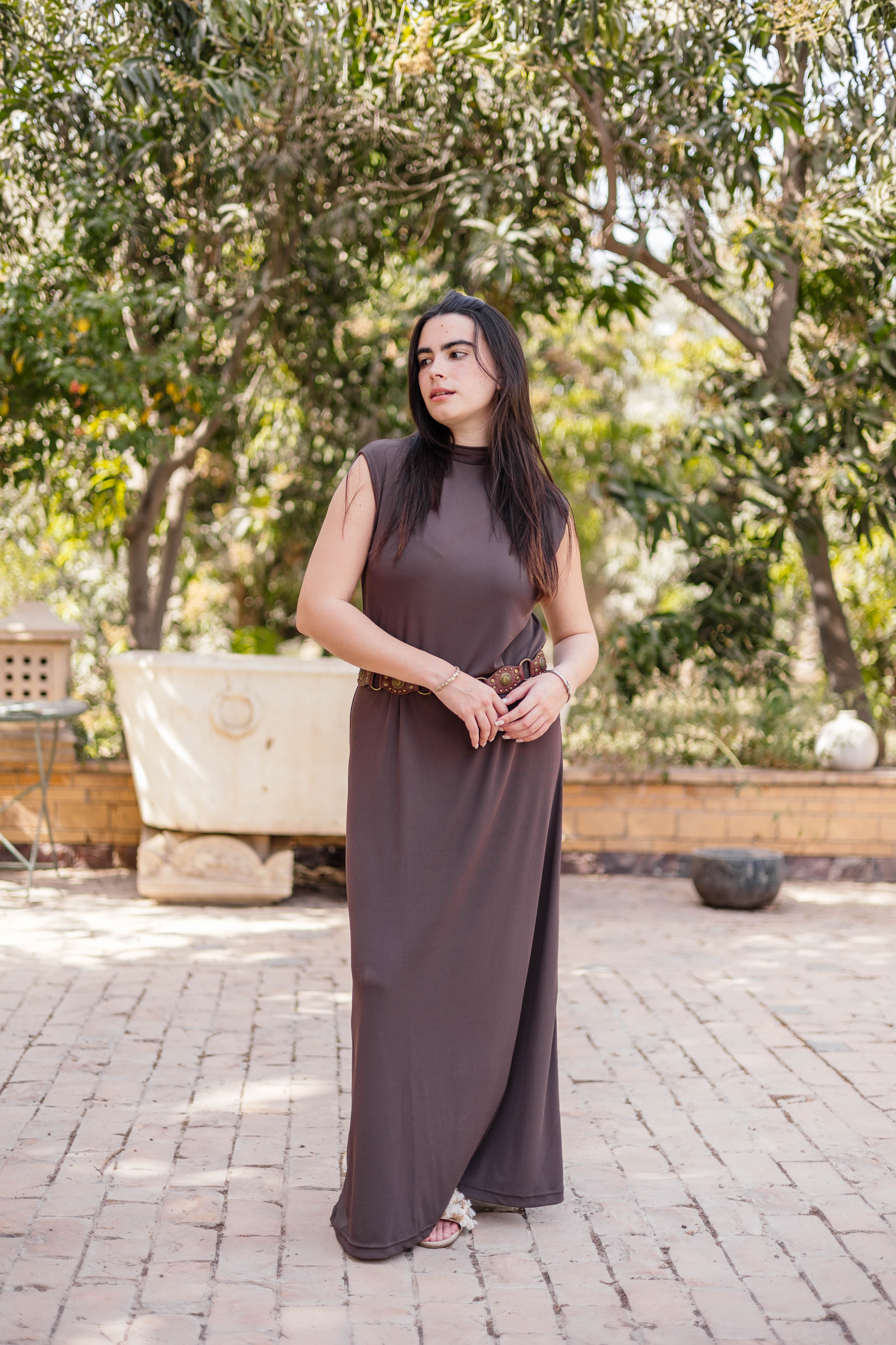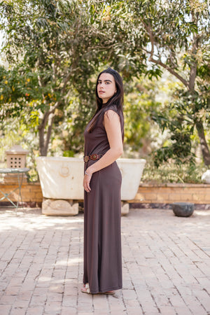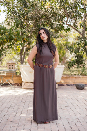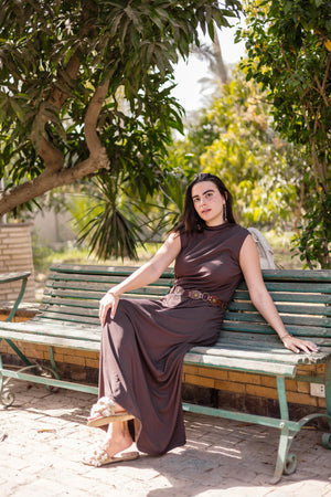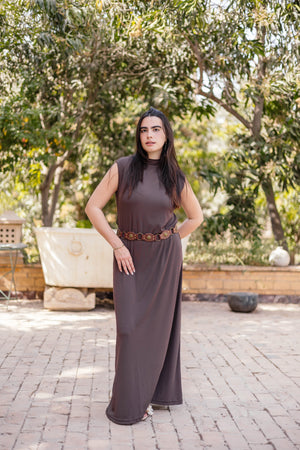 Brown Sleeveless Basic Dress