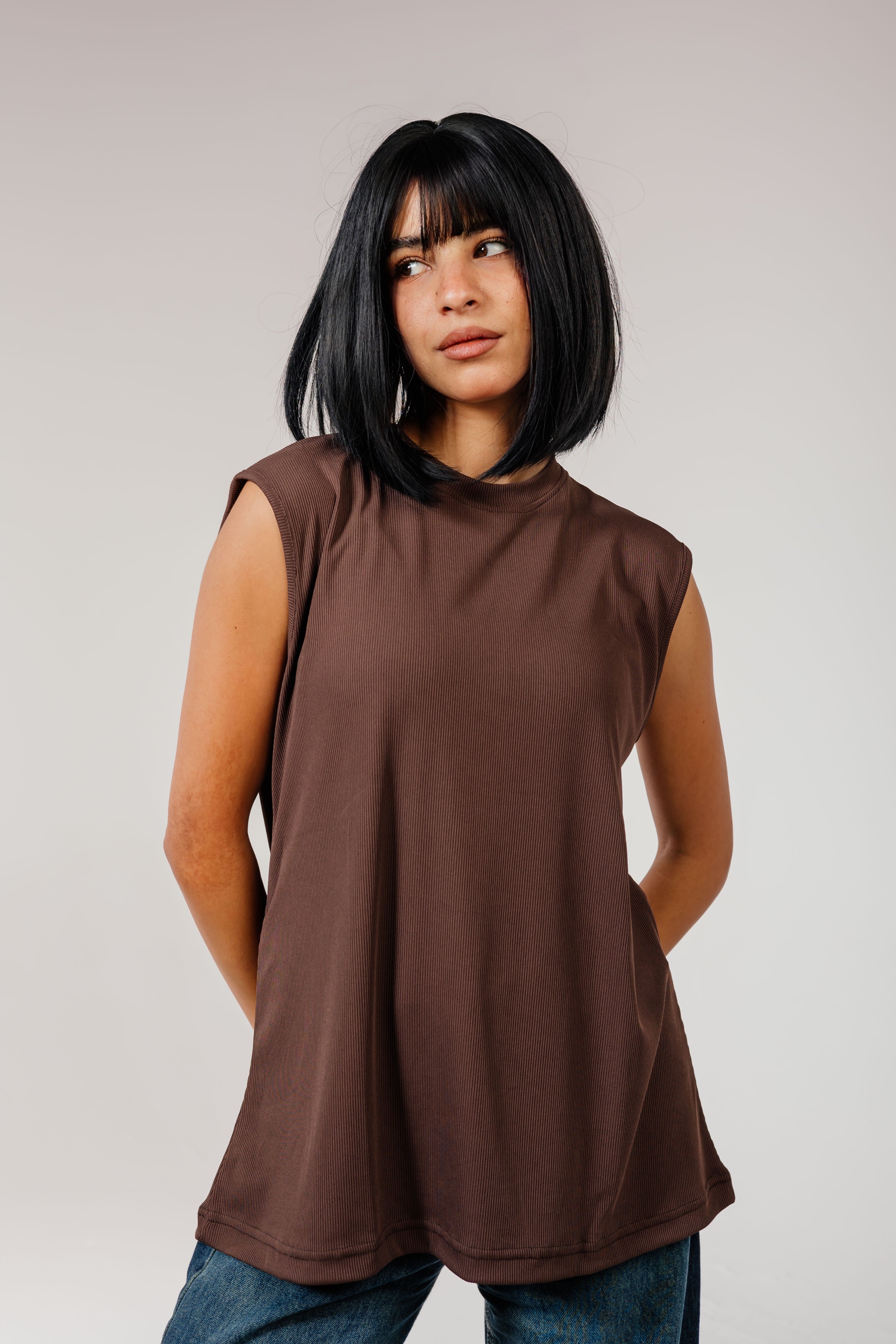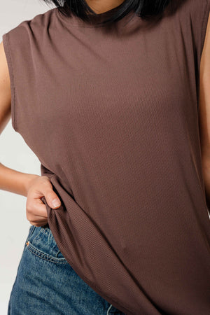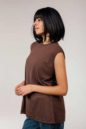 A comfy brown sleeveless cotton top — perfect for easy everyday style