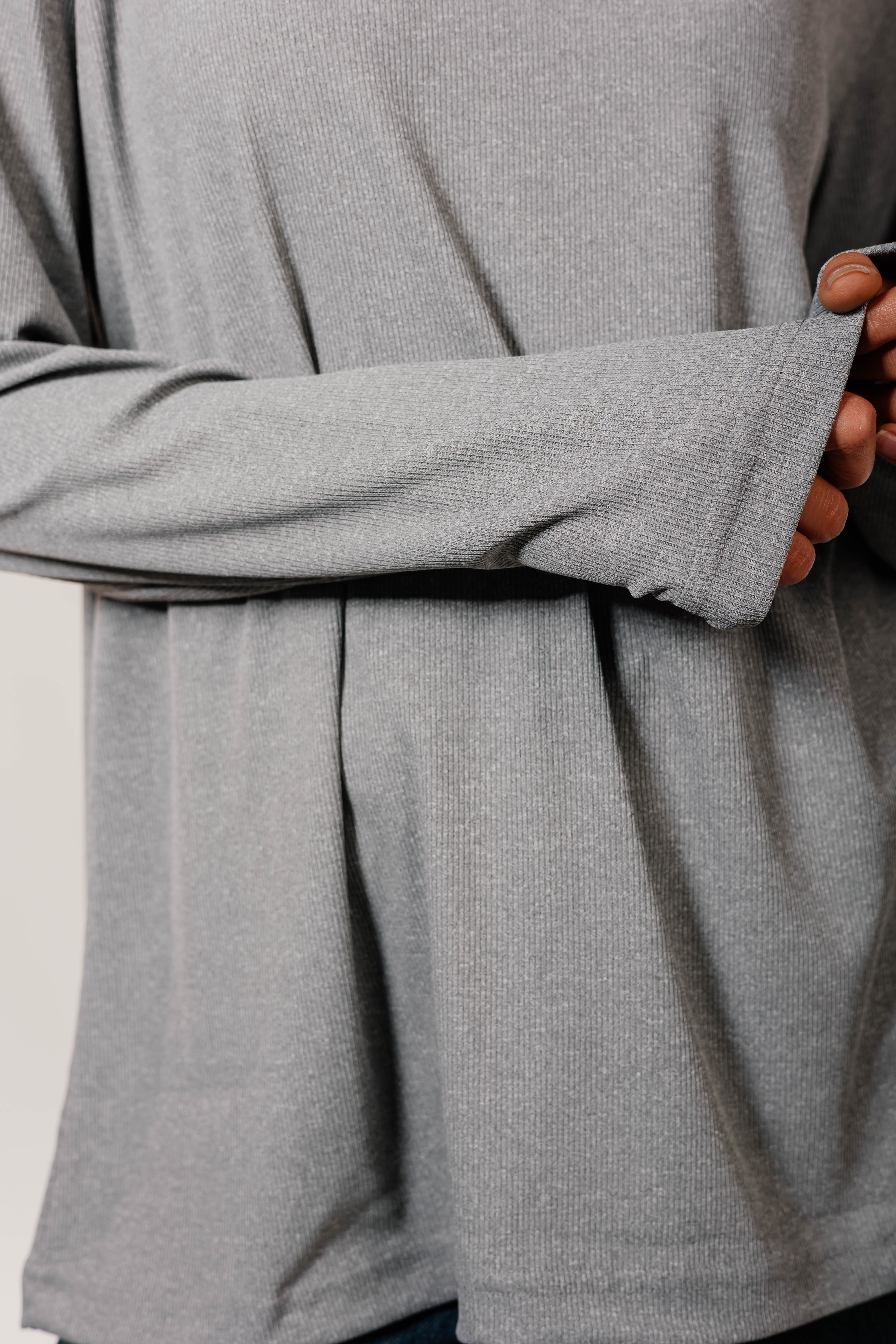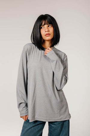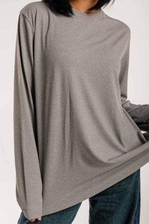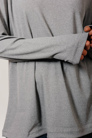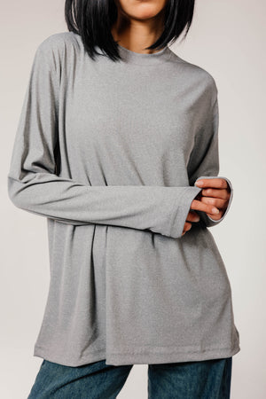 Gray Cotton Long Sleeve Top