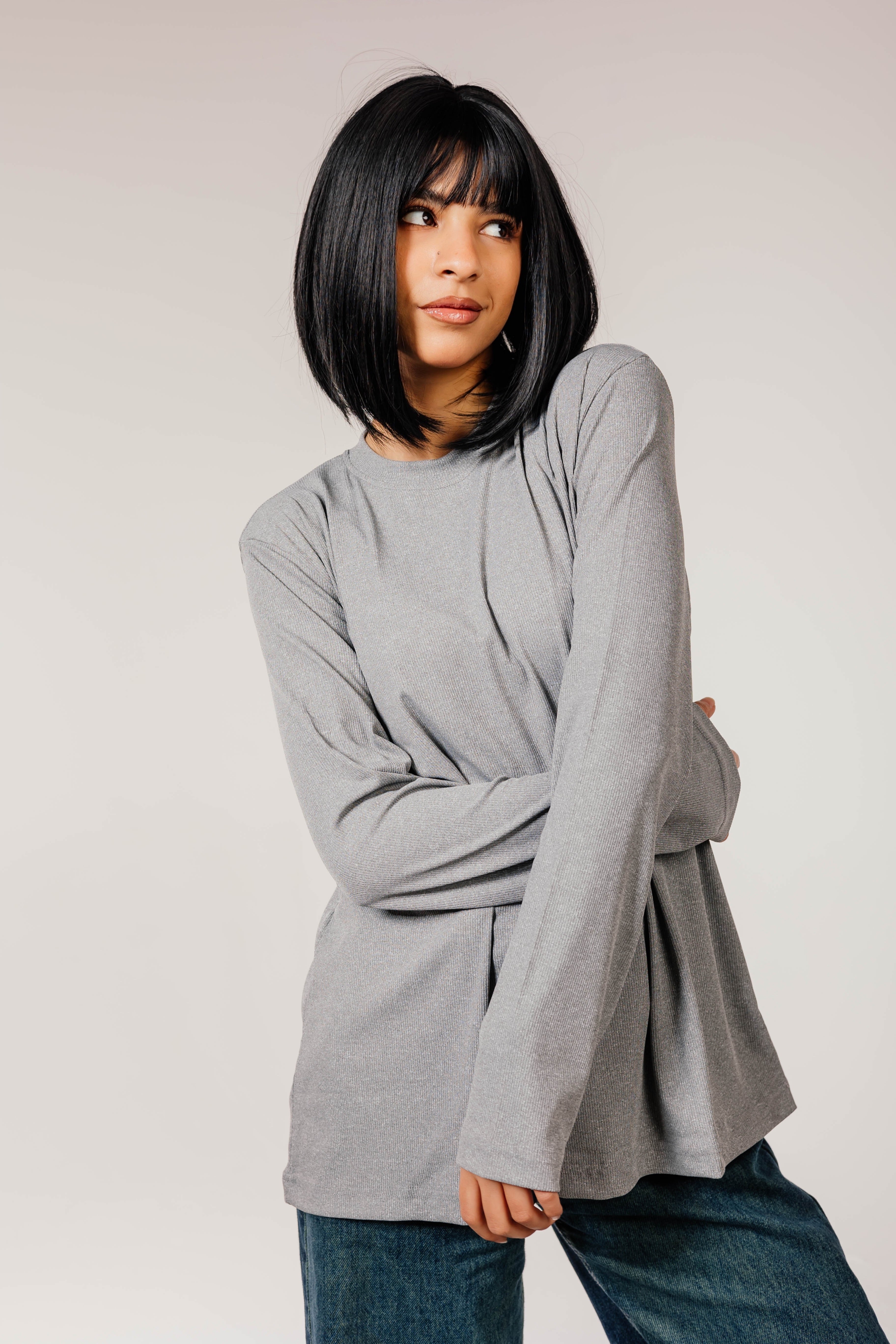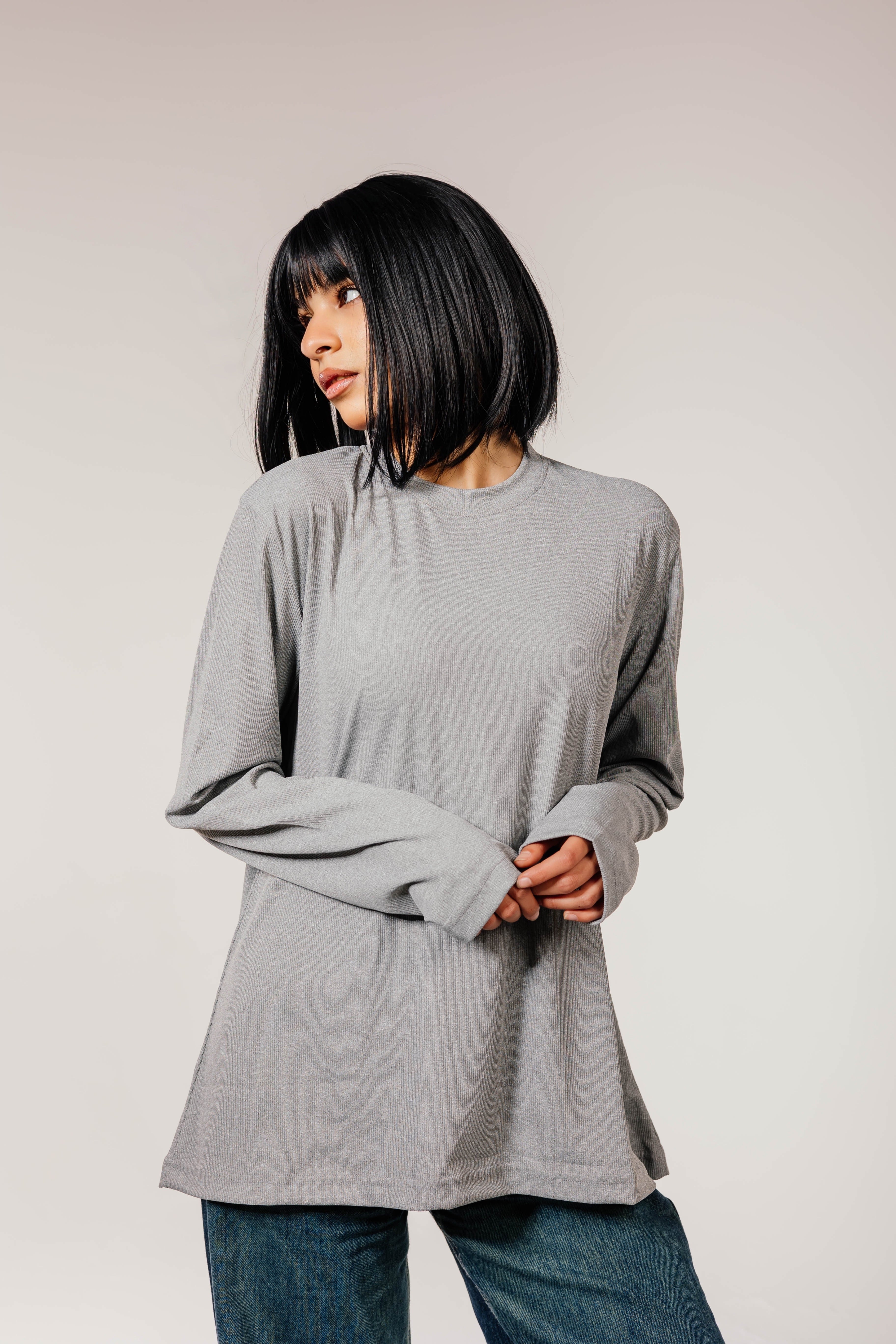Stay cozy and stylish with our gray Cotton Long Sleeve Top Made from soft, breathable fabric it’s perfect for layering or wearing on its own — and it’s especially great for hijabis Available in loose fits and extended sizes for extra comfort and coverage