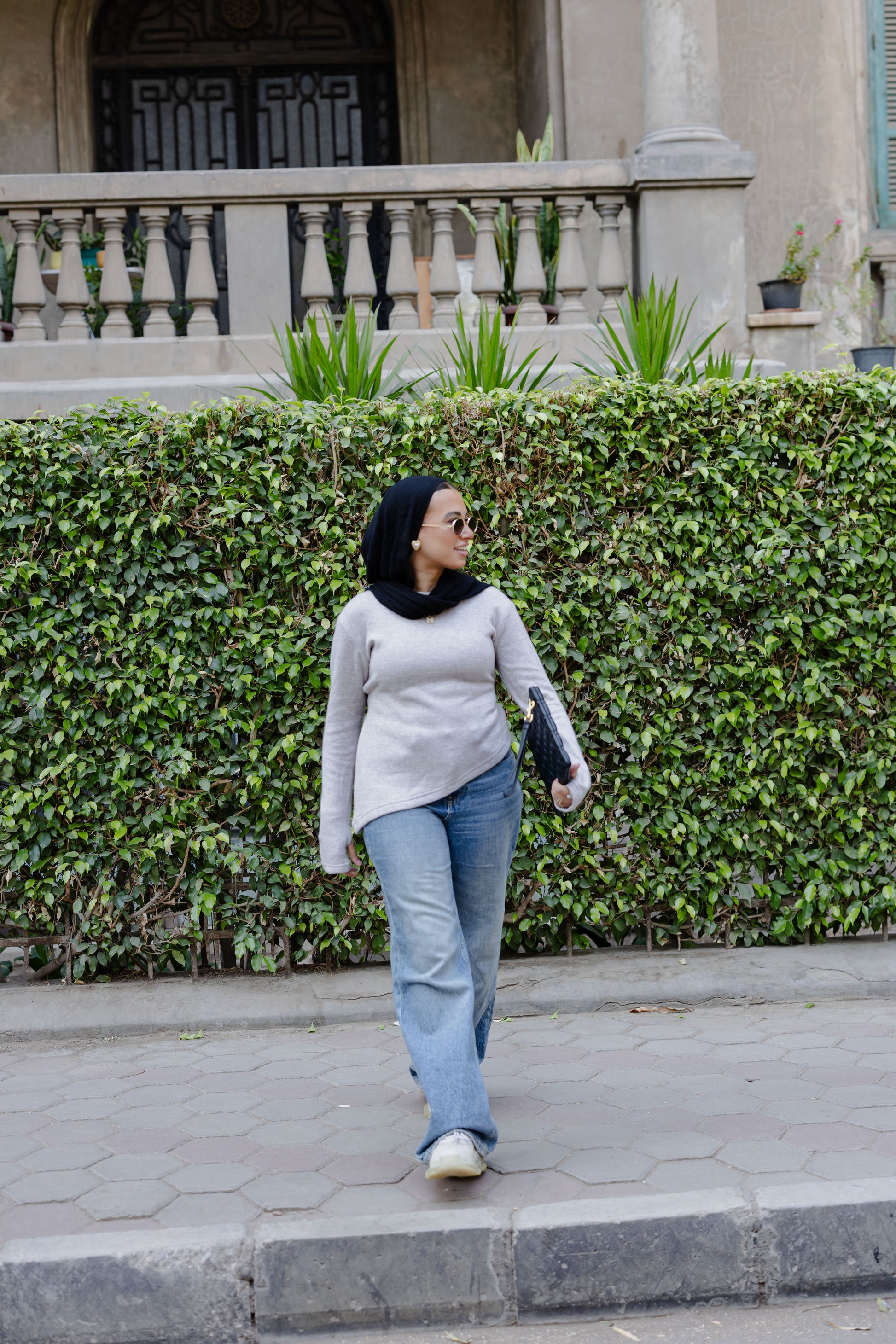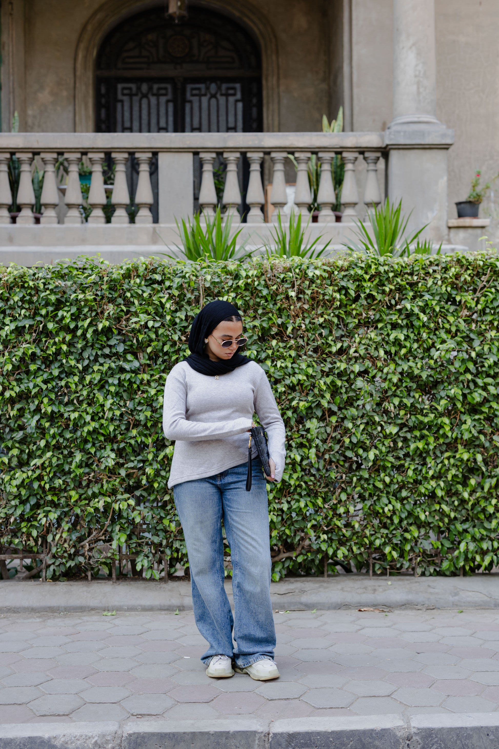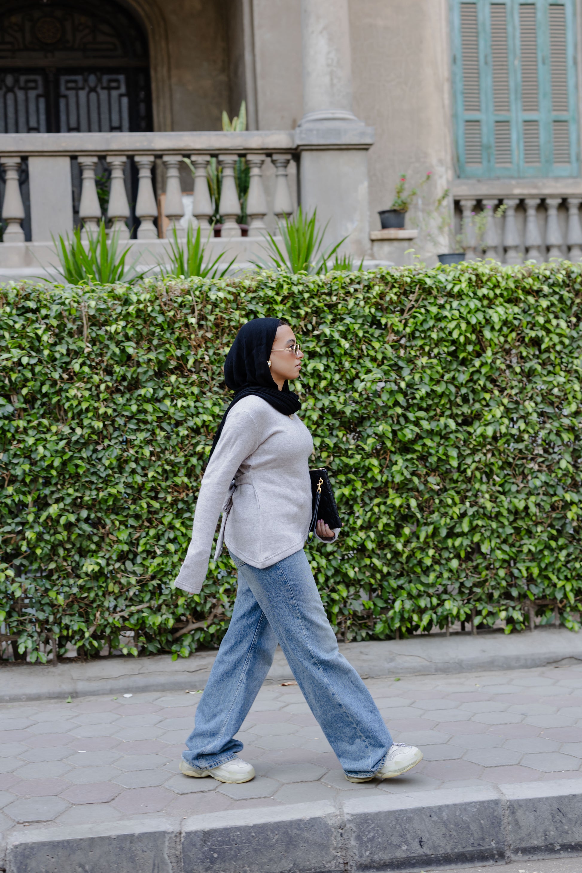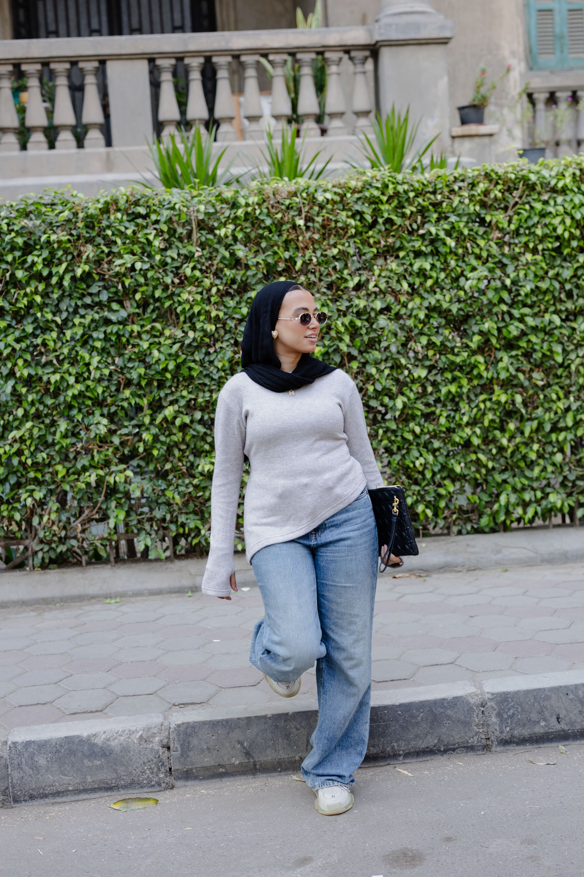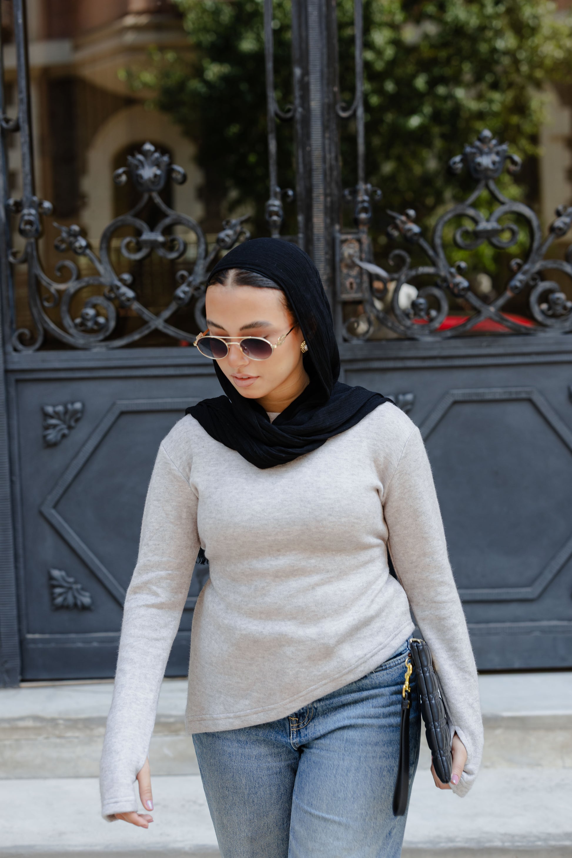 - Fitted cut with extended sleeves