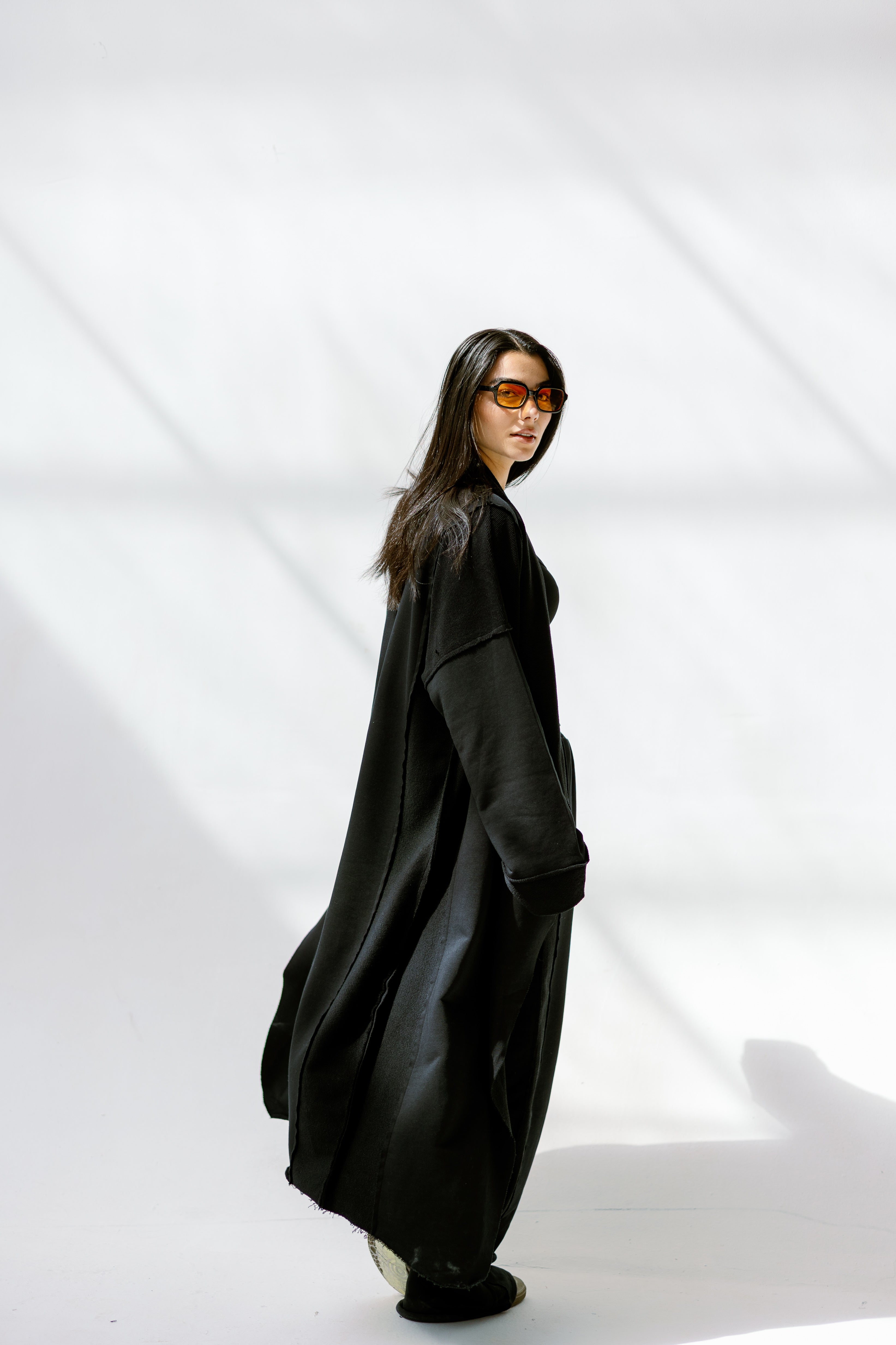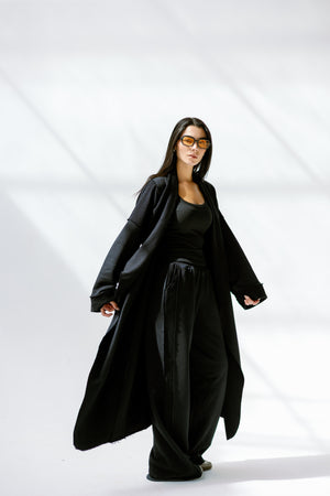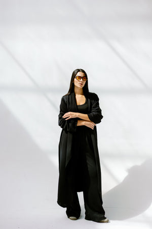 Perfect for layering over basics or wearing as a full monochrome look.