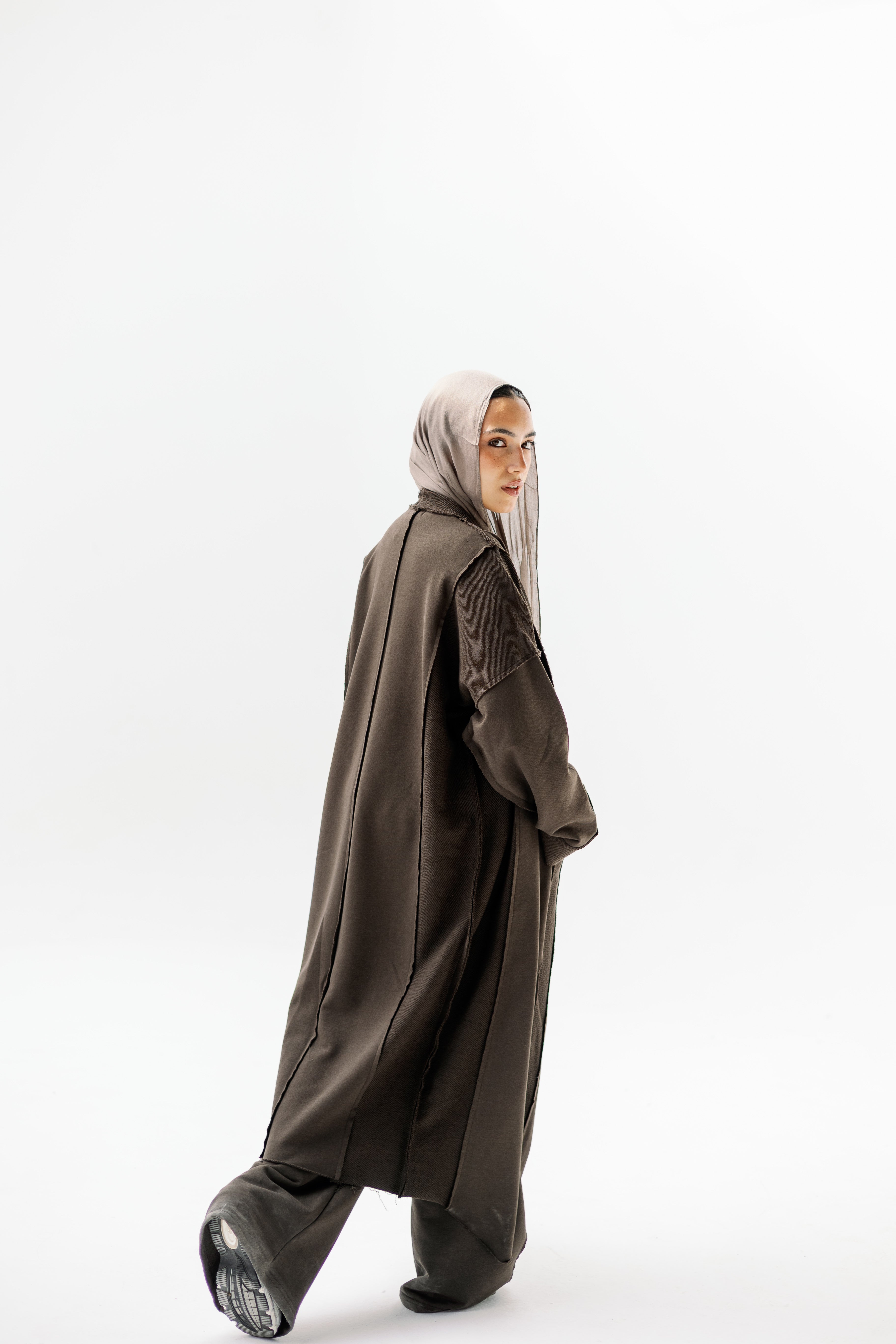 Perfect for layering over basics or wearing as a full monochrome look.