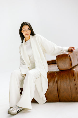 This cotton melton set is designed for women who love minimal style with a cozy twist. The soft, heavyweight fabric gives you the warmth of winter while keeping a relaxed and refined silhouette.